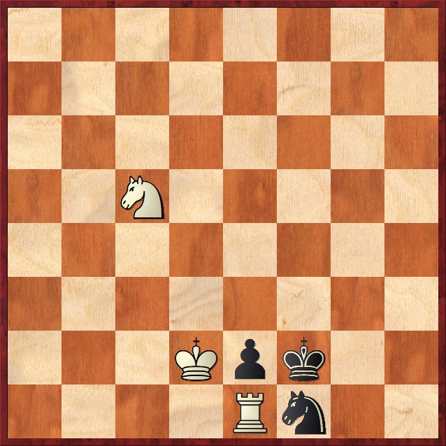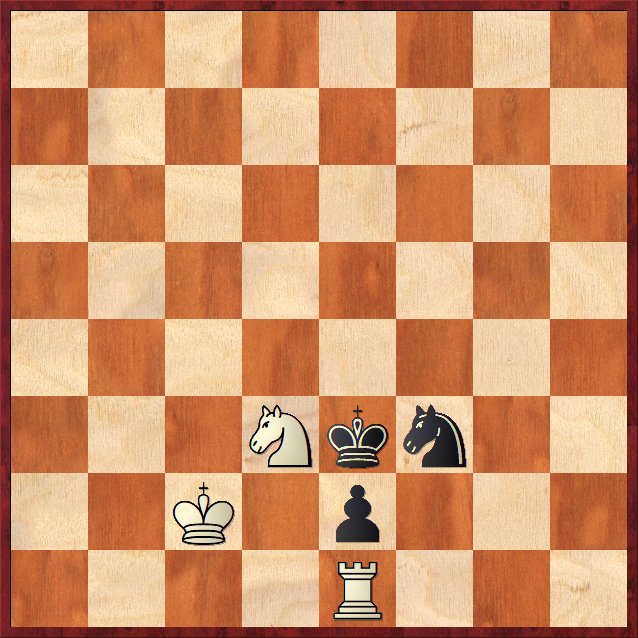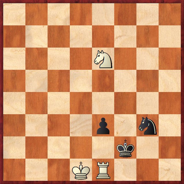 11. Tb1! vinner (11. Ta1? är bara remi efter 11. – Sd4+ 12. Kc3 Sb5+ 13. Kc4 Sd6+ o.s.v.) när vit spelat runt tornet till e8 via b8 så vinner vit enkelt.