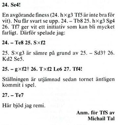 Tal kommenterade sedan, i hans tycke, det intressantaste partiet i matchen (remipartiet i rond 2!) för Dragutin Dolenec som senare publicerades i TFS 1983:1. Vi kommer in i partiet när Ulf med de vita pjäserna är vid draget.