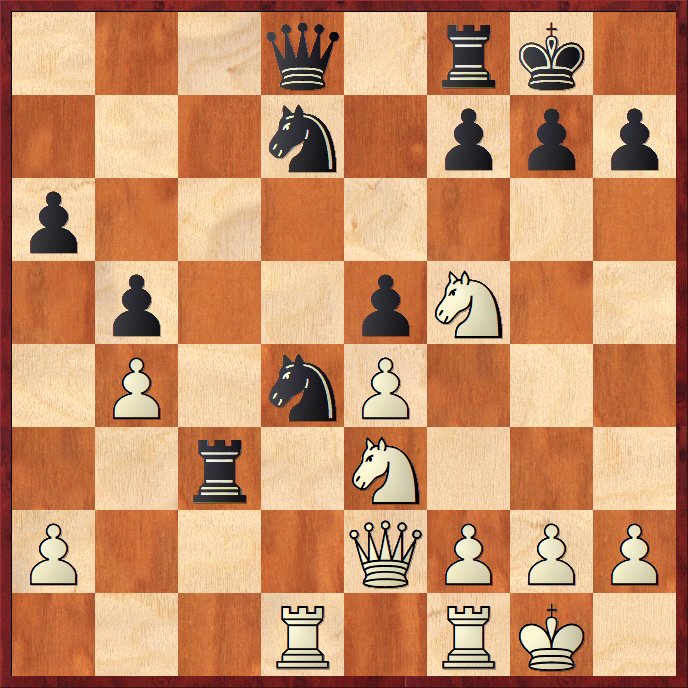 Men det enkla 20.Txd7! Dxd7 21.Sd5 hade avgjort direkt. Svart kan inte gardera sig mot både Sxc3 och Sf6+.