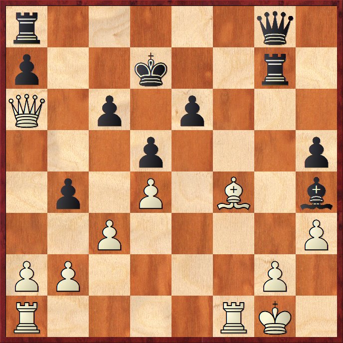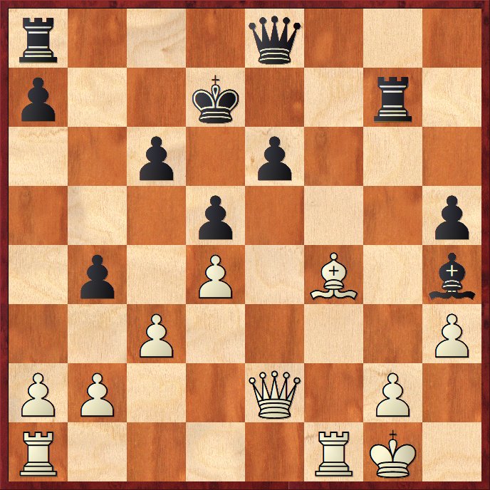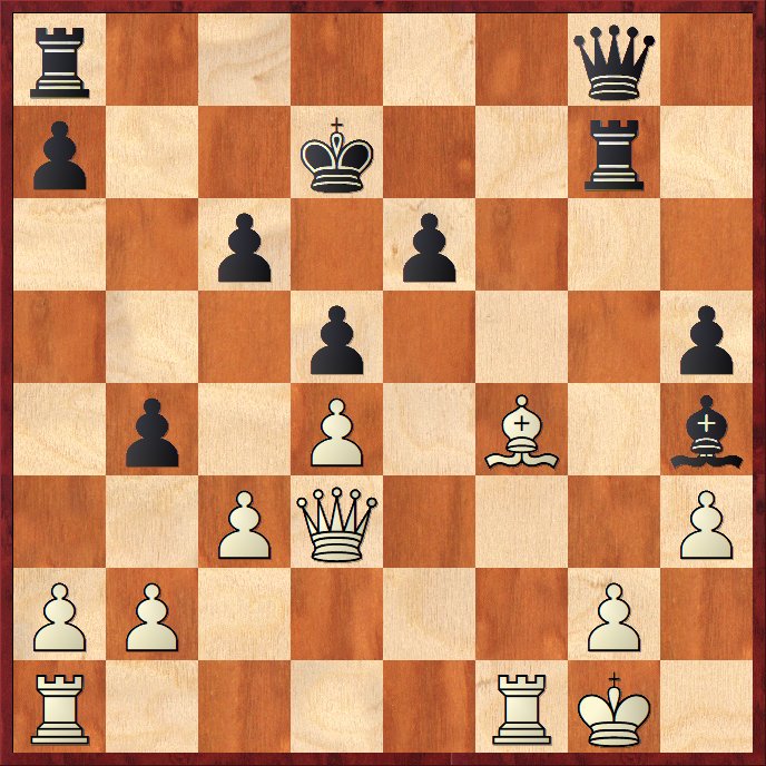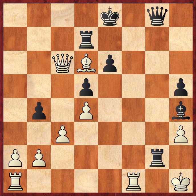 Efter 27…Txg2+ 28.Kh1 och t.ex. 28. – Tc8 29.Dxa7+ Ke8 30.Db7 Td8 31.Dxc6+ Td7 32.Ld6. . .