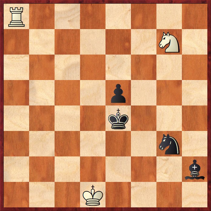 Lösning: 1. Nc2 Nb3 2. Na1! Nxa1 3. Ba4 och vit fortsätter med att plocka c5 bonden med kungen för att sedan gå ned med sin c-bonde.
